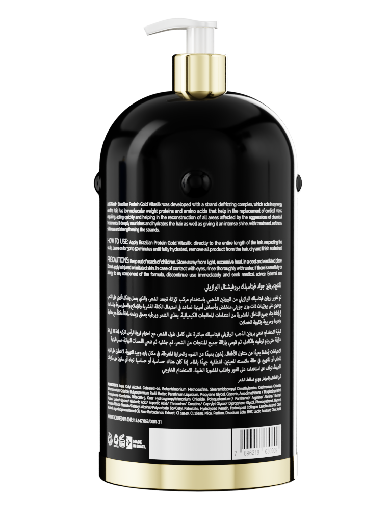 La protéine brésilienne Vitasilk 24K Gold a été développée avec un complexe défroissant innovant qui agit en synergie sur la fibre capillaire. Grâce à ses protéines de faible poids moléculaire et ses acides aminés, elle aide à réparer, reconstruire et protéger les cheveux fragilisés par les traitements chimiques.